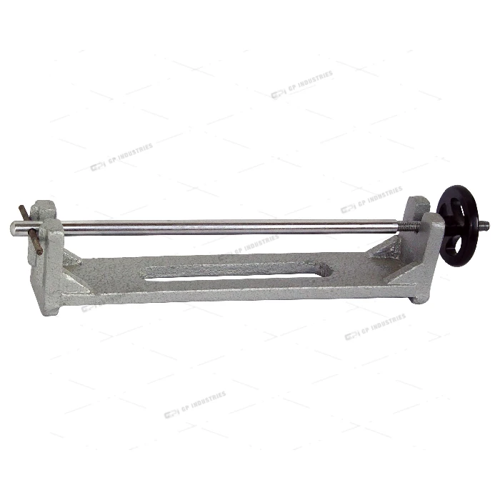 To show force of contraction or expansion. A heavy cast iron base with 4 uprights, on one end of which is fitted a hand nut, the other drilled with holes to carry a cast iron rod of 75x 6mm size bearing against narrow flats, overall size 330 x 60 x 60mm with 12 cast iron breaking rods.