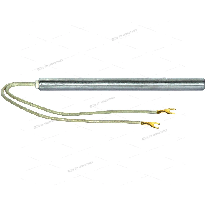 A fully sheathed miniature 12V 50W (nominal) heater which has been specially developed for use with the block calorimeters. The element is housed in a 150mm stainless steel tube. The Electrical is via 180mm flying leads with heat resisting insulation.