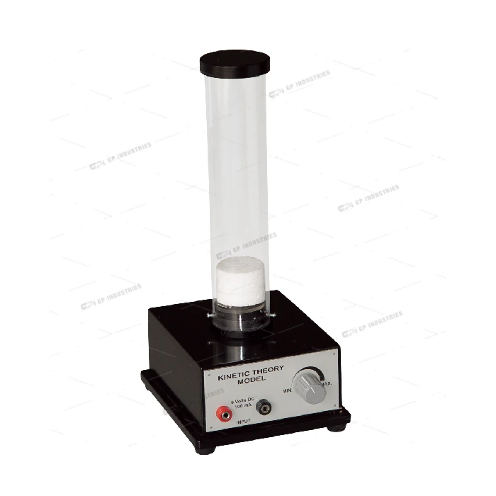 The apparatus consists of a clear perspex tube 250mm long x 50mm outside diameter provided with a light, freely sliding expanded polystyrene piston and a loose fitting metal cap. The tube is mounted by means of a bayonet-type fitting in a metal cap, upon a polished wood motor housing 165 x 140 x 75mm high. A low voltage d.c. motor is contained in the housing and is coupled to a crank-driven agitator. The push rod of the agitator carries a light plastic piston which oscillates in the lower end of the tube. The apparatus is supplied complete with a supply of 3mm dia metal spheres and one thermocoal loading discs.