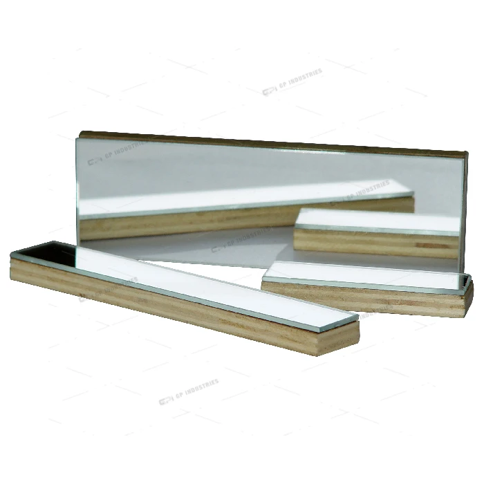Back silvered with protective coating, mounted on wooden block 20mm thick approx.