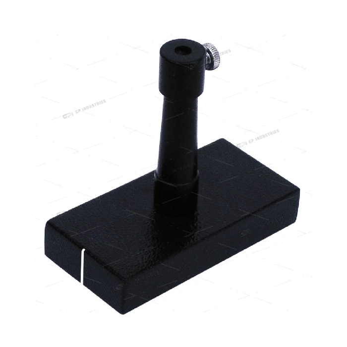 Consisting of metal pillar with clamping screw, supported onablack base 100 x 50mm with an engraved index line at one end. To accept rods of 6mm dia as used on standard optical bench fittings.