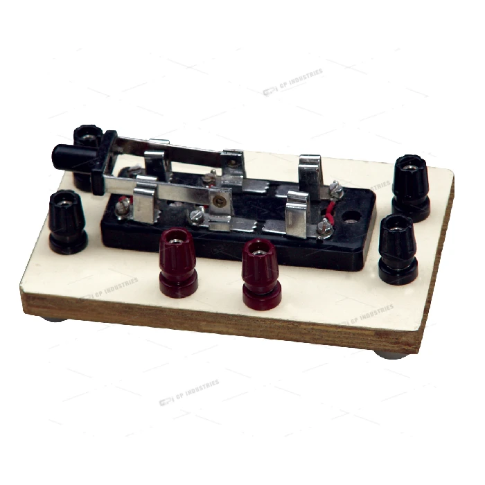 A double-pole double throw knife switch for connecting the motor/generator. The socket terminals are labeled battery, motor and lamp respectively.